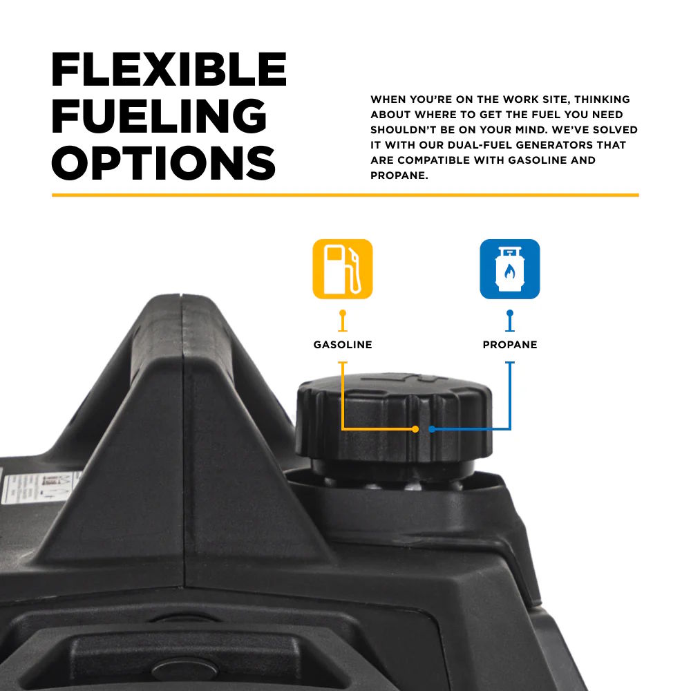 One of the standout features of the BE4700ID is its DUAL-FUEL technology, allowing you to choose between gasoline or propane (LPG) based on your needs. Gasoline is easy to find and great for quick fill-ups, while propane burns cleaner and stores longer—perfect for emergencies or seasonal use. Simply hook up your preferred fuel source and enjoy reliable power without the hassle of conversions or additional hardware.