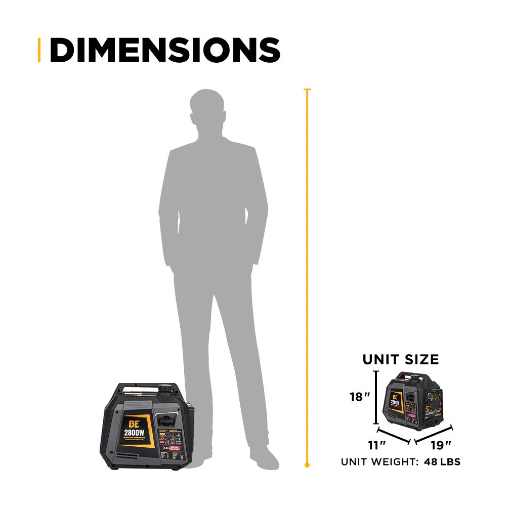* All BE Power Equipment Portable Generators are tested in our factory and may contain residual oil and fuel odor; EPA and CARB Compliant.