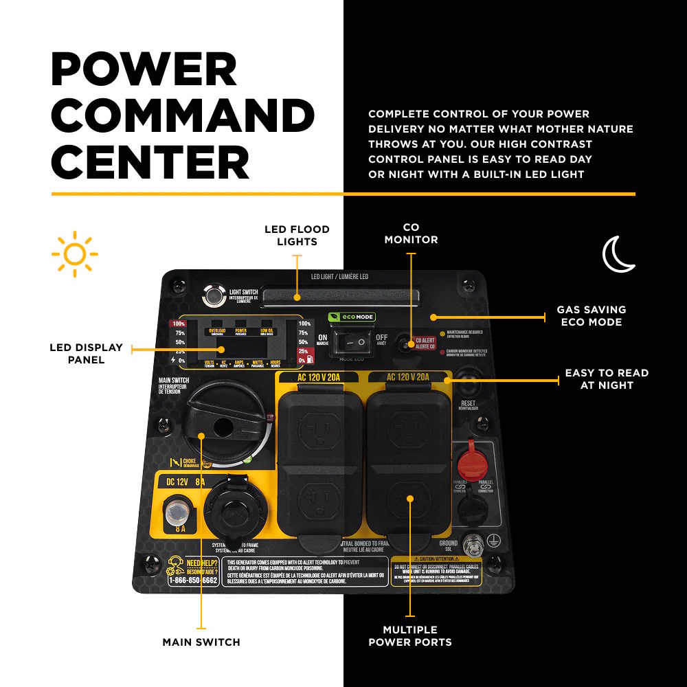 Automatic CO detector automatically shuts down the generator before harmful levels of carbon monoxide accumulate.