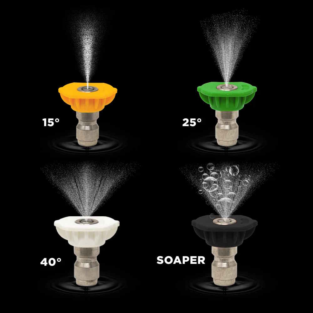 4 Quick-Connect Nozzles (15°, 25°, 40° and Soap)