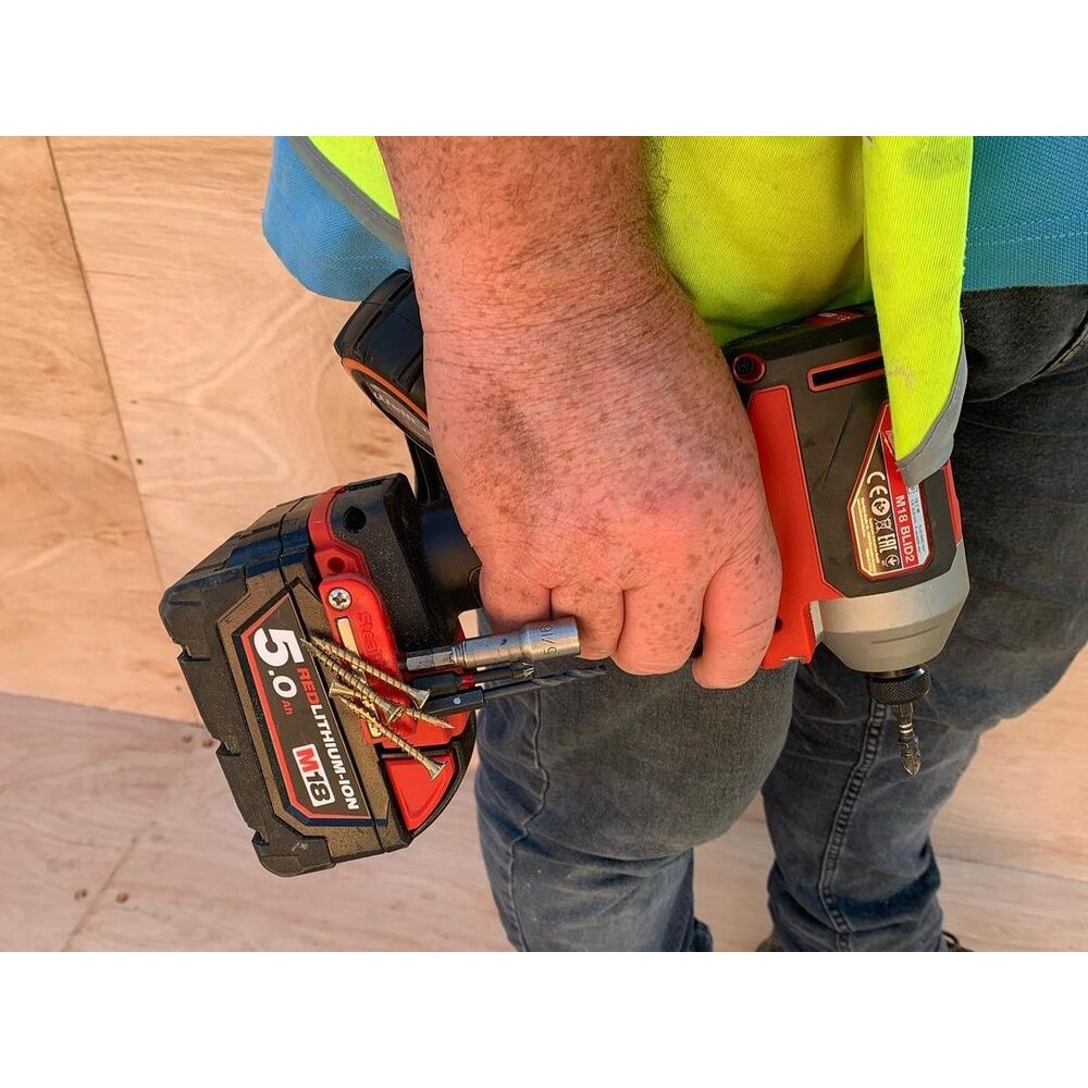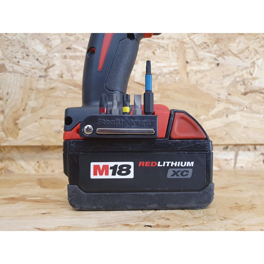 StealthMounts Bit Holders for Milwaukee M18 are the perfect addition for your drill or impact driver. This bitholder keeps your bits together, organised and on your drill or impact driver. Our Milwaukee M18 Bit Holders come in a pack of 2. Each magnetic bitholder can hold up to 5 bits allowing you to access your most common drill bits ensuring that you never lose track of them. The appropriate screw for mounting to most of your Milwaukee M18 tools is provided. The magnet allows the bitholder to be mounted to the tool at different angles, extra screws can also be stored on the side of the magnet. Bits wont fall out even when the holder is mounted upside down. Made in Great Britain our Milwaukee M18 Bit Holders are made with extremely durable injection moulded ABS plastic.