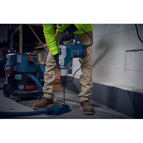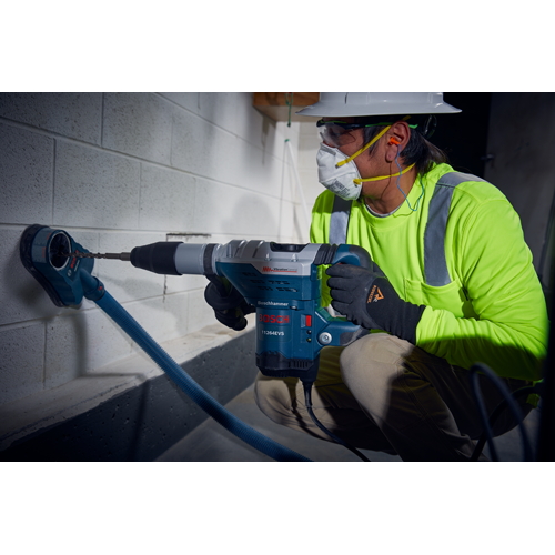 The Bosch 11264EVS SDS-max® 1-5/8- In. Combination Hammer features a powerful 13.0 Amp motor and has a dual-mode selector for combination versatility - rotary hammer or hammer-only mode. Providing 6.5 Ft.-Lbs. of impact energy, the tool weighs only 15.2 Lbs., for a top performance-to-weight ratio. The hammer has integral clutch that helps to minimize torque reaction. Concrete contractors will appreciate the production in drilling and chiseling applications. The hammer's 12-position Vario-Lock helps to optimize chiseling angles. Bosch's Vibration Control in the hammer mechanism and grip area provide improved user comfort. And with Constant Response circuitry, users benefit from smooth starts and constant load under pressure.