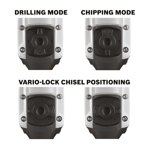 The Bosch RH540M SDS-max® 1-9/16 In. Combination Hammer is a rotary hammer and hammer-only tool designed for concrete contractors and professional remodelers who need a powerful and versatile tool. It delivers 6.1 Ft.-Lbs. of impact energy while weighing in at only 15.2 Lbs. The motor is rated at 170 to 340 RPM in rotary mode and 1,200 to 2,750 BPM in hammer mode, which will easily reduce concrete to dust. Its SDS-max® bit system allows tool-free and one-handed bit changes. The Vario-Lock mechanism lets users angle the chisel into 12 different positions to optimize the working angle. The hammer has a Dual Mode Selector Knob and service minder brushes, which clearly indicate when preventive maintenance is required.
