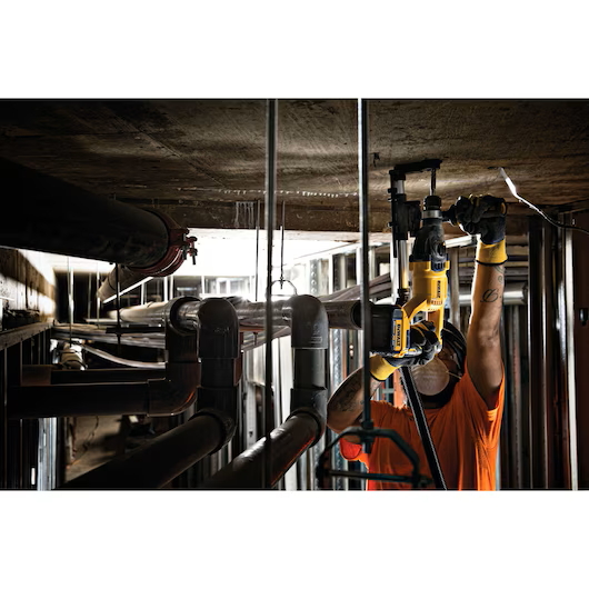The DCH133B 20V Max XR Brushless 1" D-Handle Rotary Hammer is a compact light weight high-performance rotary hammer that has a durable German engineered mechanism that delivers 2.6 joules of impact energy. At the heart of this tool is the DEWALT brushless motor and durable rotary hammer mechanism. With its better than corded speed of application, compact size, light weight and balanced design, this hammer can replace your corded tool. The mechanical clutch enhances user control in a bind up situation and can help minimize sudden torque reaction. The DCH133 is dust extraction ready for the D25301D.