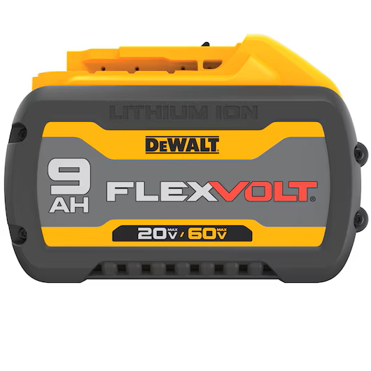 The dual-voltage 20V/60V MAX* FLEXVOLT® 9.0 Ah battery automatically changes voltage when you change tools, providing up to 6X runtime** in 20V MAX* tools and the power of corded in 60V MAX* and 120V MAX* tools. Take on tough jobs with this battery because patented technology and large format cells mean it runs cooler*** than the leading competitor 9.0 Ah battery pack under a constant discharge. This is the battery for FLEXVOLT® power and long runtime.
