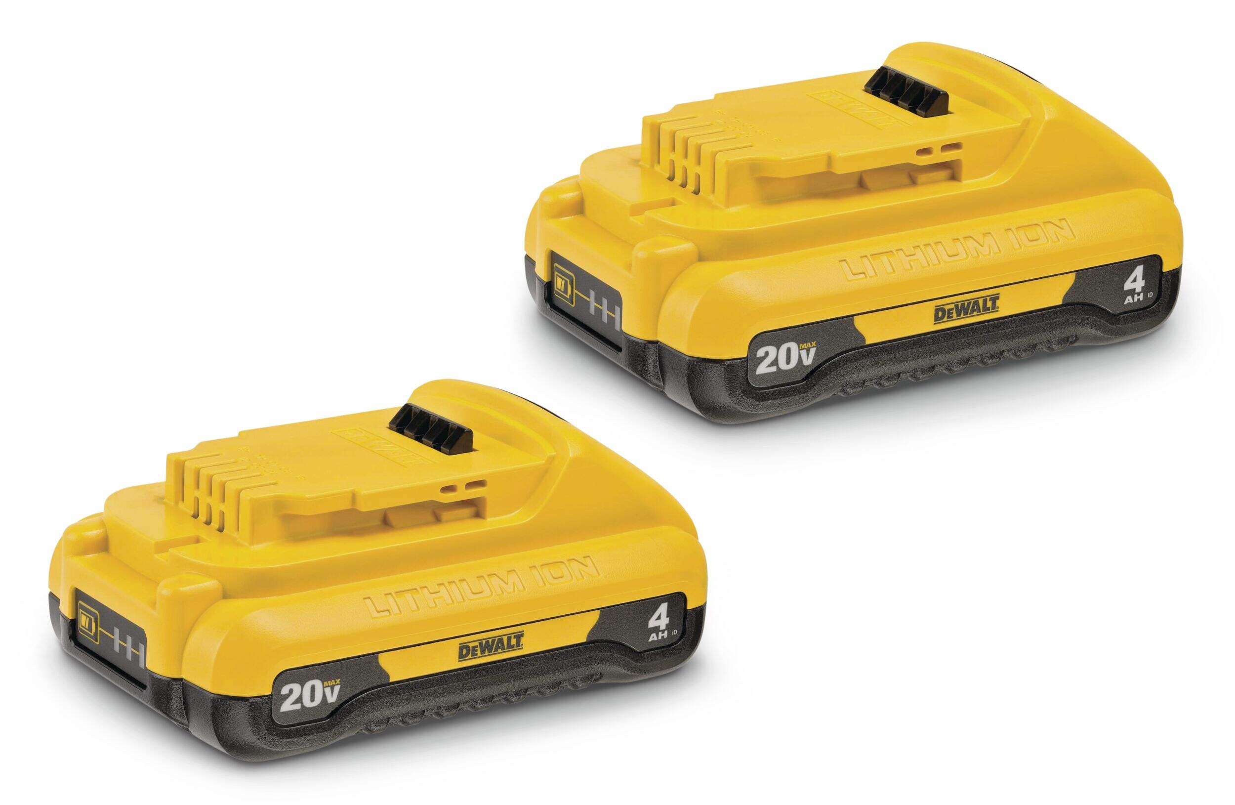 This 20V MAX* 4.0 Ah Battery 2-Pack gives you a pair of our high-capacity compact 20V MAX* batteries. They provide 4.0 Ah capacity with reduced weight, giving you optimum comfort for extended power tool use. It includes a 3-LED Fuel Gauge system to instantly check battery state of charge. This battery is compatible with all DEWALT 20V MAX* power tools and includes 3-Year Limited Warranty.