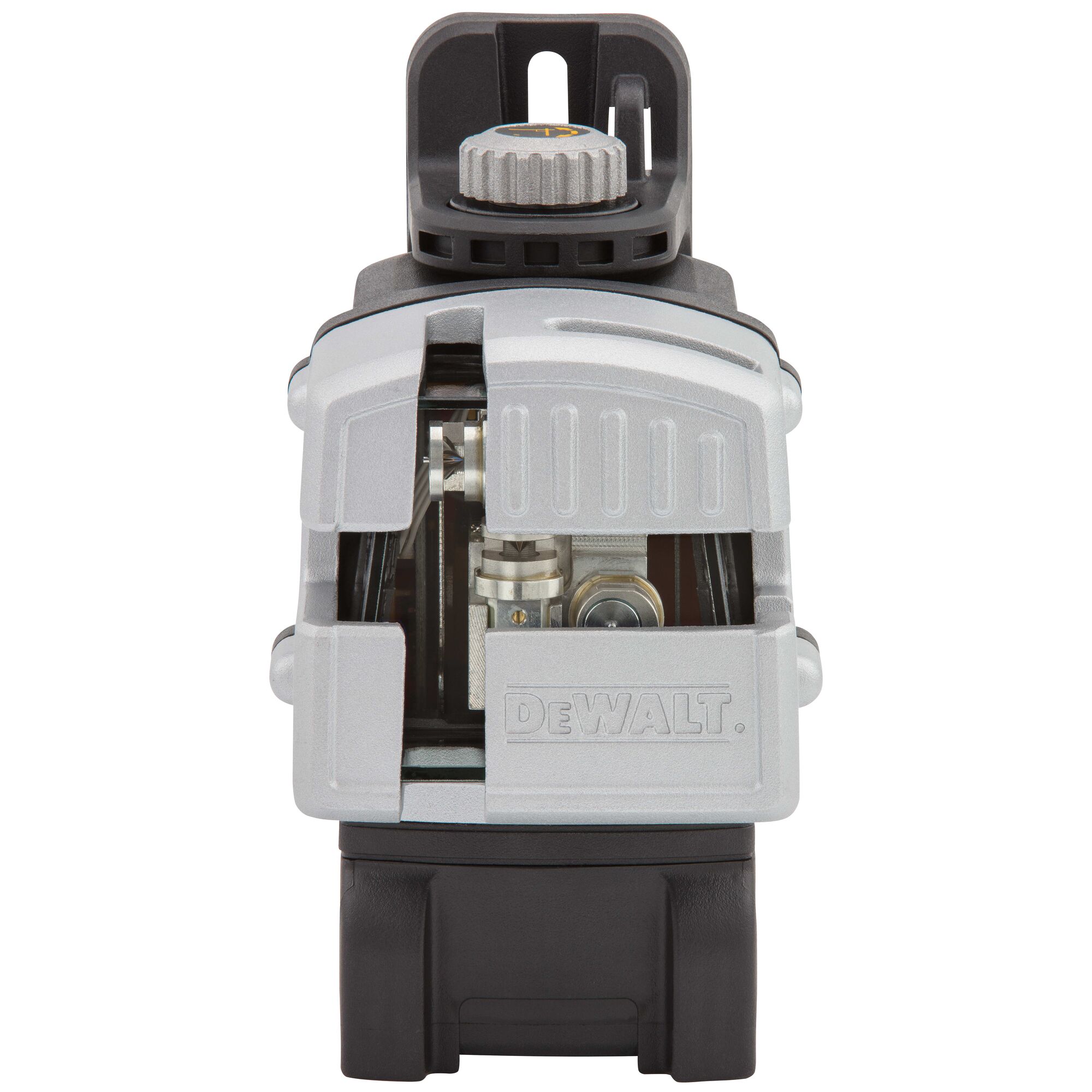 Green beam laser for clear visibility 3-beam line laser to aid in 90-degree layout Built-in magnetic pivot bracket mounts easily on metal surfaces Accurate to +/- 1/8" @ 30' for level applications Micro adjust knob for precise alignment of 90-degree intersecting lines over greater distances