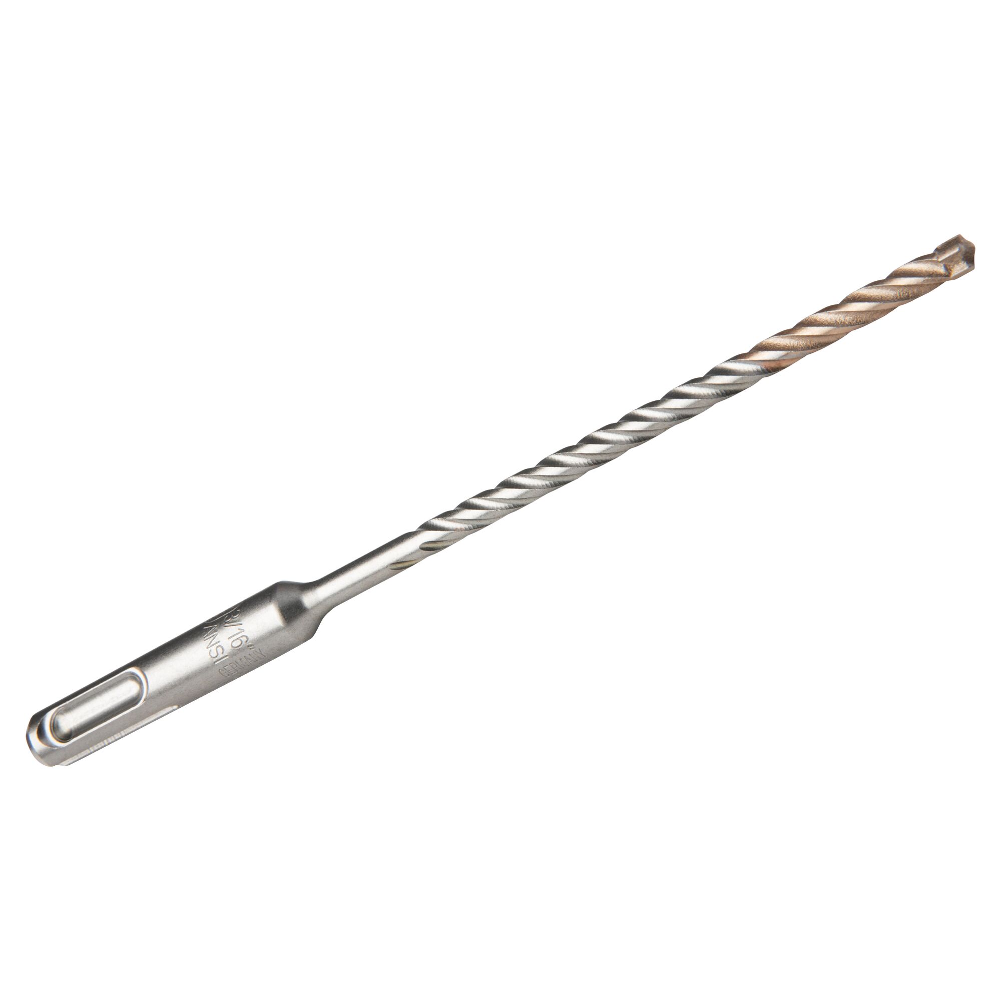 Power through masonry, concrete, rock and more with DeWALT? hammer drill bits. Featuring rock carbide tips that maximize surface contact for extended bit life and a 4-flute design that cleans debris while you work. Three flats on the shank eliminate bit slippage.