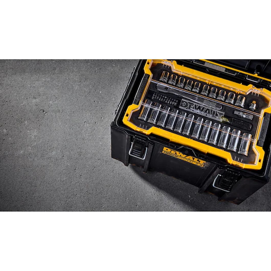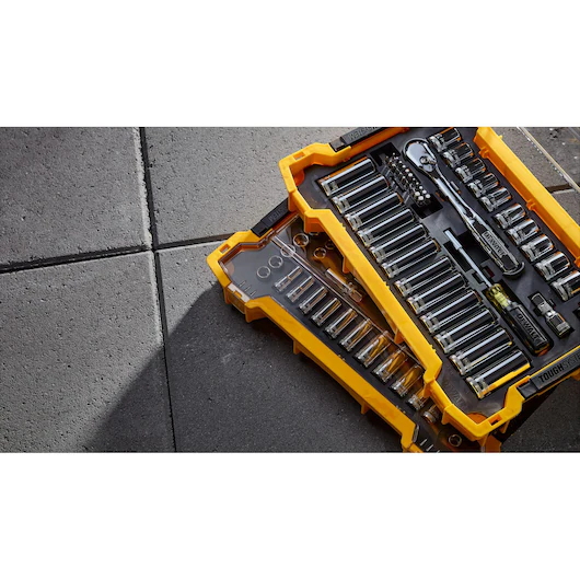 This 85-Piece Mechanics Set includes a wide selection of sockets, socket accessories & Bits to help complete a variety of tasks. The set is sold inside the two TOUGHSYSTEM 2.0 Shallow Tool Trays, along with a molded inserts and compatible lids for optimal storage and transportation. This set includes a durable 72-tooth ratchet wih 5 degree arc swing for maneuverability in restricted areas. Full-polish chrome provides corrosion resistance and gives these tools a classic look.