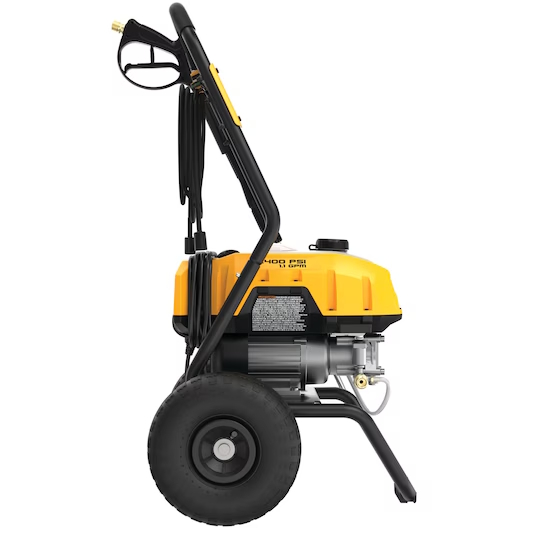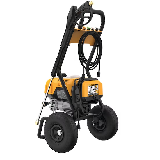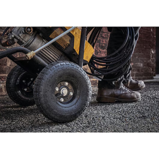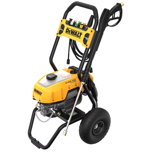 You can rely on the durable, mobile, and powerful DEWALT 2400 psi Pressure Washer, delivering enough power to handle your outdoor cleaning tasks. Be prepared to tackle just about any job or wash your vehicle with the accessories you need. This Cold-Water Pressure Washer comes equipped with five nozzles, including a Turbo nozzle and built-in storage for organization. Built to transport over rugged terrain, the pressure washer features premium 10 in. pneumatic wheels so you can take it to the jobsite. The 2400 PSI Cold-Water Pressure Washer is backed by a 3 Year Limited Warranty.