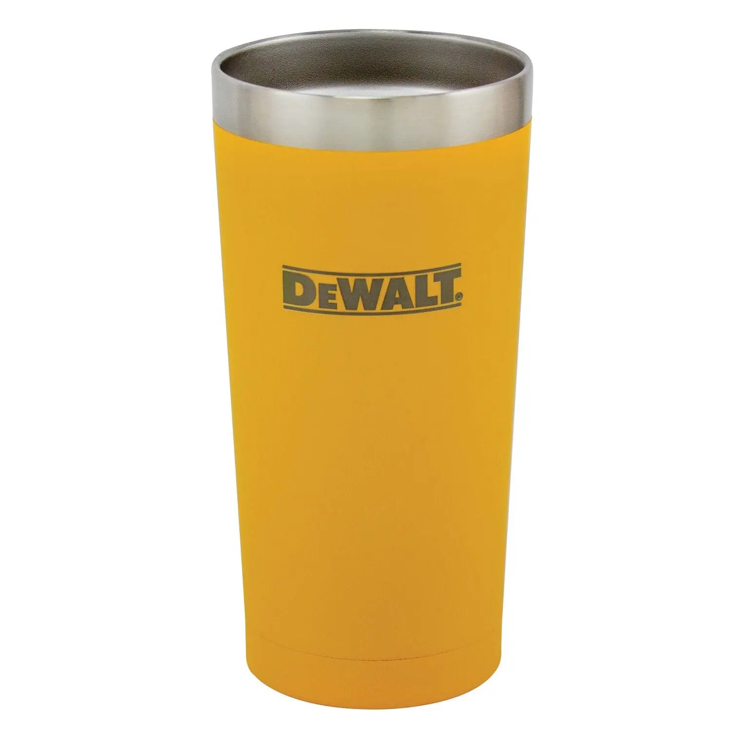 Take this DEWALT 20 oz. Yellow Powder Coated Tumbler wherever the job or life takes you. It's built to keep your drink hot or cold in any weather with a durable 18/8 stainless steel body and dual-wall vacuum insulation. This will be your new favorite cup on the jobsite, in the backyard, or while traveling. It holds its internal temperature without condensation or heat transfer to the outside wall. Whether your drink is ice cold or piping hot, your hand won't be while holding this quality tumbler. The clear, BPA-free lid is straw-friendly with a flip-top closure that snaps into place ensuring that your drink time is spill-free. Hand wash and dry only.
