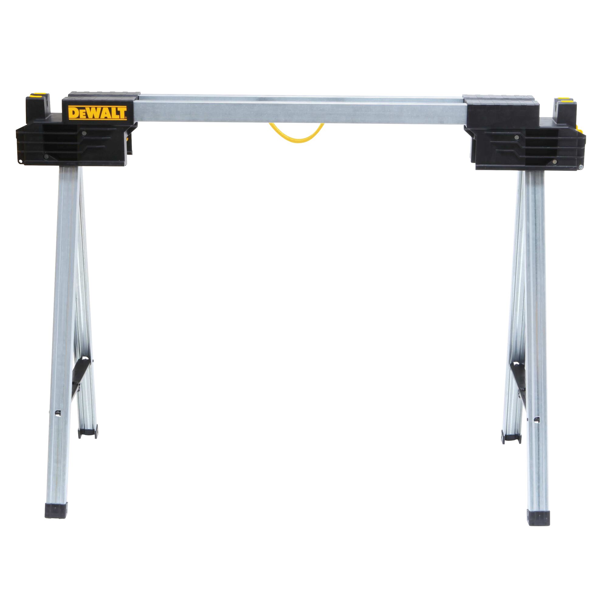 The Metal Folding Sawhorse has a durable metal structure with a capacity load of 2,000 lb. It is designed to provide versatility with a 2x4 in. recess to work with large wood and v-grooves which is great for projects with pipes and smaller wood. The top metal bars allow for secure clamping. It has quick and compact folding capability, allowing it to be portable and easy to store.