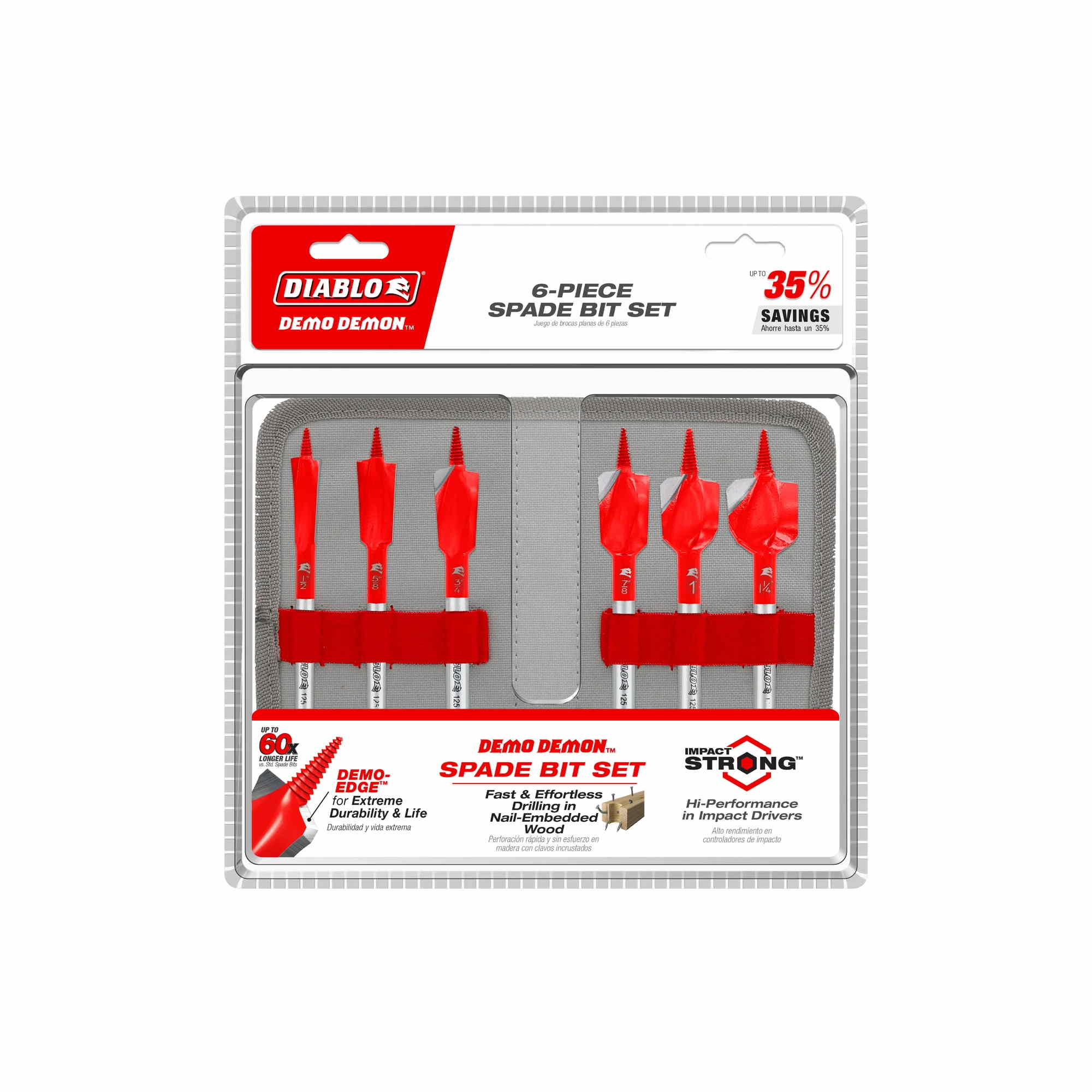 Diablo’s Demo Demon™ Spade Bits provide one of the most durable, effortless, and longest lasting hole drilling solutions on the market for nail-embedded wood. The DEMO-Edge™ dual cutting edges coupled with a self-feeding Dura-Tip™ power through nail hits for a smooth drilling experience and up to 60X longer life. An optimized curved paddle design enhances the chip evacuation process for more holes per charge. This range is Impact Strong™ for increased shank stability and durability in cordless and corded impact and drill drivers.