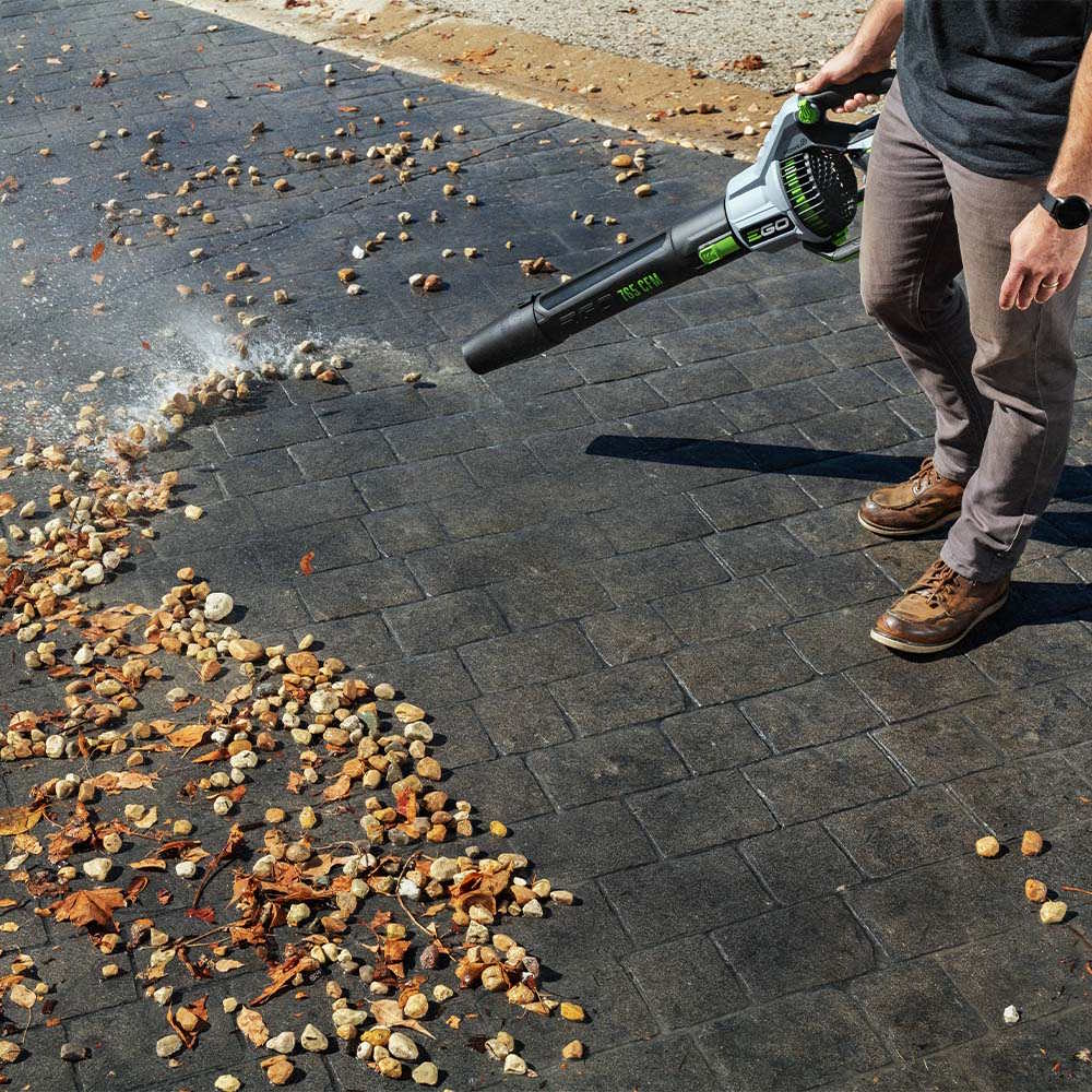 The EGO POWER+ 765 CFM Blower delivers powerful clearing performance with air speeds up to 200 MPH and up to 765 CFM.