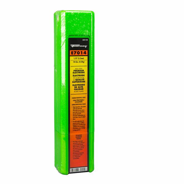 The Forney 32110 7014 Mild Steel Super Contact is a mild steel, iron powder type electrode with medium to shallow penetration. It's known for smooth arc characteristics, good arc stability and low spatter. Excellent for sheet metal and ornamental iron work on poorly fitted joints. Easy to operate. Excellent for sheet metal and ornamental ironwork on poorly fitted joints. 1/8-Inch ie.3.18 mm diameter rod. 10-Pound ie.4.54 Kg box of rod. Tensile Strength is 70,000 PSI. Amperage range is 110-145 amps. Typical Spec Example E6011: E is for electrode. The next two numbers ie.60, 70 or 80 indicates the tensile strength of the rod for example 60,000. The third number tells the welding position; ie.1=All position ie.2=Flat or Horizontal position ie.4=Flat, Horizontal, Overhead and Vertical Down position. The fourth number indicates the type of current to be used and coating of the rod; ie.0=Cellulose Sodium, with deep penetration, use Direct Current Electrode Positive ie.1=Cellulose Potassium, with deep penetration, use AC or Direct Current Electrode Positive, or Direct Current Electrode Negative ie.3=Titania Potassium, with light penetration, use AC or Direct Current Electrode Positive ie.8=Low Hydrogen, Iron Powder, with medium penetration use AC or Direct Current Electrode Positive. Claims for warranty must be made within 90 days of the date of purchase. Proof of purchase required. This warranty does not cover any product that has been subject to misuse, neglect, negligence or accident, or that has been used in any way contrary to the purpose intended.