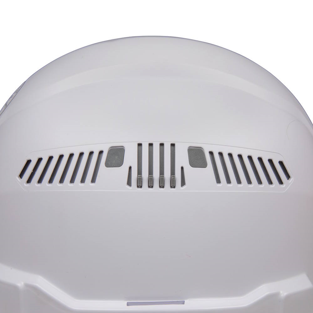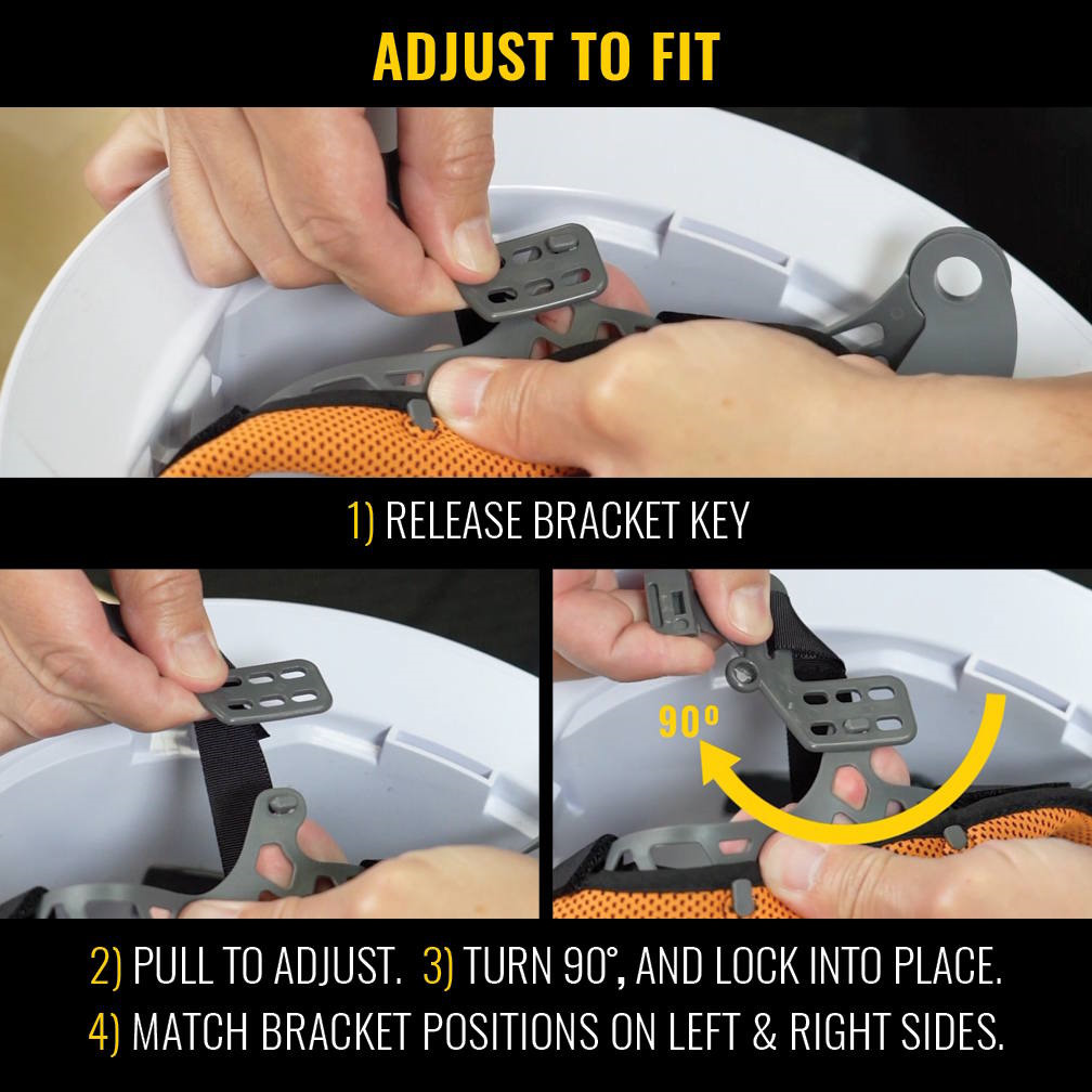 - Safety hard hat has patent-pending accessory mounts on front and back that ensure Klein Headlamps attach securely and precisely, every time; no straps or zip ties needed