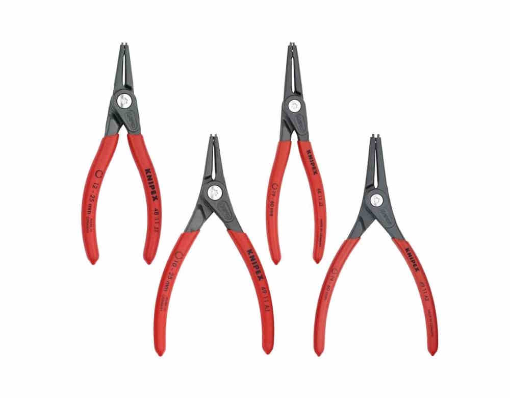 Contains common precision circlip pliers for highest requirements; Sturdy plastic packaging, also suitable for storage of the pliers; Contains: 48 11 j1, 48 11 j2, 49 11 a1, 49 11 a2