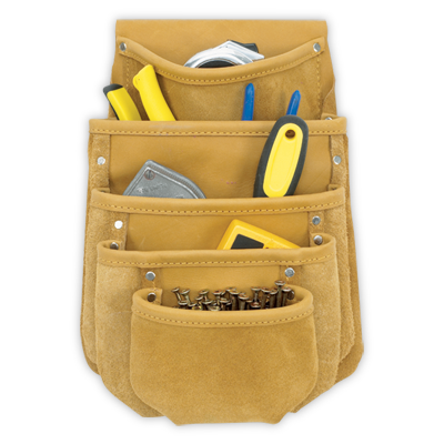 Signature Elite, the ultimate line of work gear includes this hammer/tool holder made with heavy-duty top grain premium leather including a large pocket for pliers or other tools and a steel hammer loop.