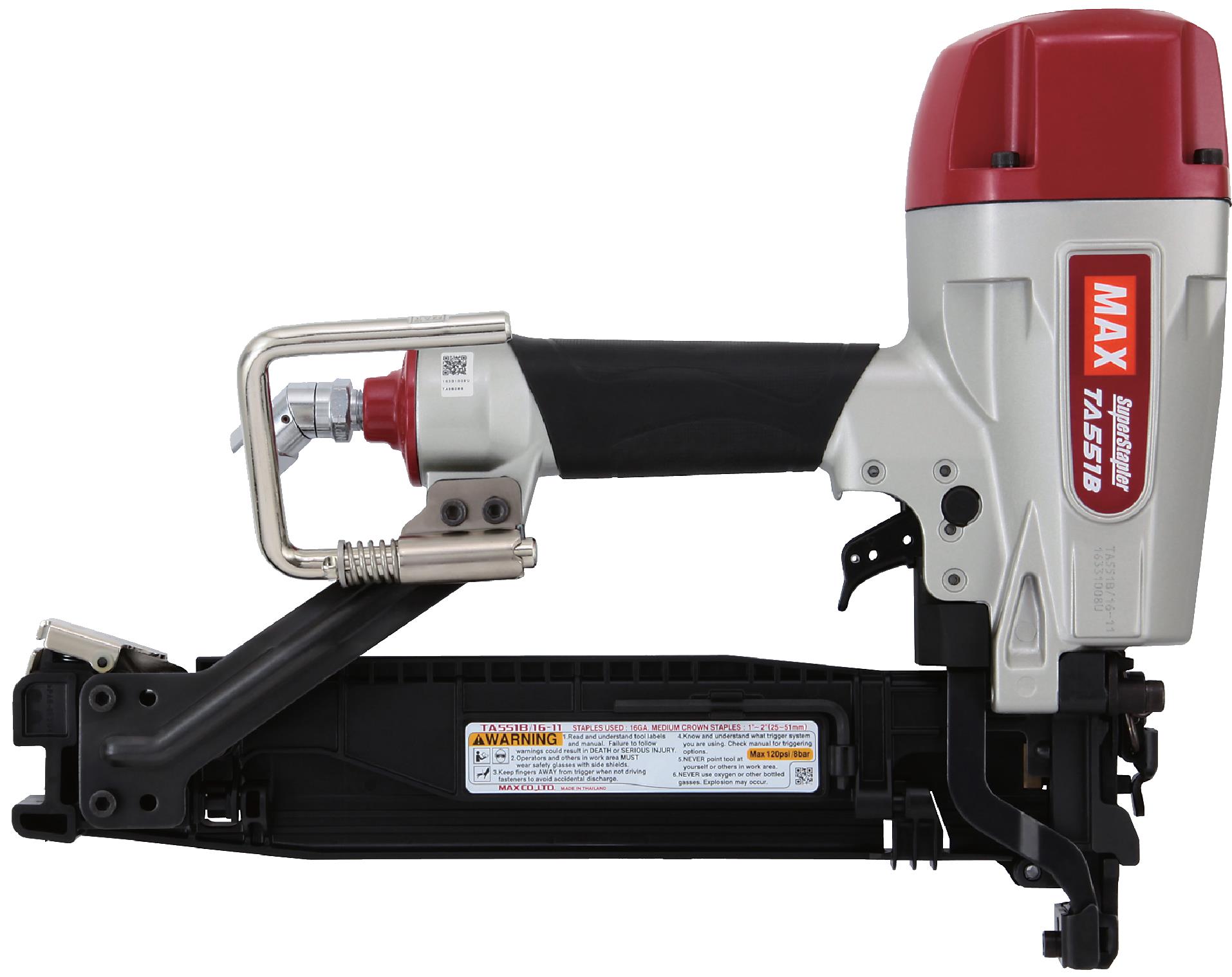 From sheathing, subflooring, roof decking, pallets, vinyl siding, and more, the safety equipped SuperStapler is an extremely versatile and lightweight medium crown stapler, weighing only 5.5 lbs. Built with an array of safety and efficient mechanisms, makes this stapler an ideal choice for any jobsite. Designed with a 3-tooth driver blade safeguards from jamming by securely driving the staple flush into the materials. Additionally, the SuperStapler is fit out with a unique tangle free swivel fitting so users can avoid tripping hazards from tangled air hoses. MAX is committed to manufacturing reliable tools that have been designed to deliver enhanced performance while making sure that users can carry out safe operations.