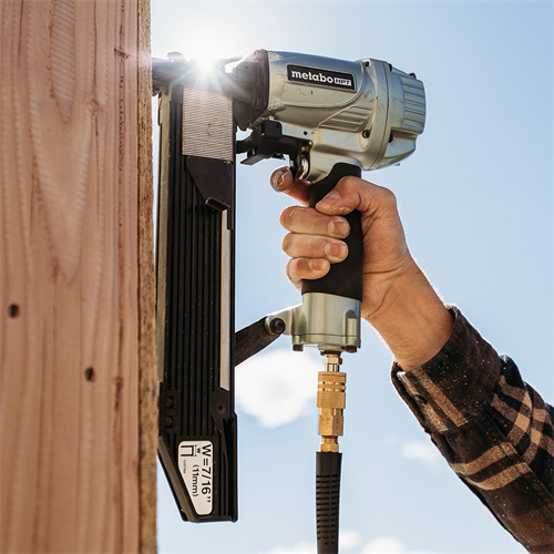 The 16 Gauge 7/16 Inch Standard Crown Stapler (N5008AC2) is used for construction work such as wall sheathing, roof decking, subfloor installation, mobile and modular home construction and assembling wooden crates and expendable pallets. The standard crown stapler fires 16 gauge 7/16 In. crown staples from 1 In. to 2 In. in length and features Metabo HPT's next generation industrial design, precision and durability.