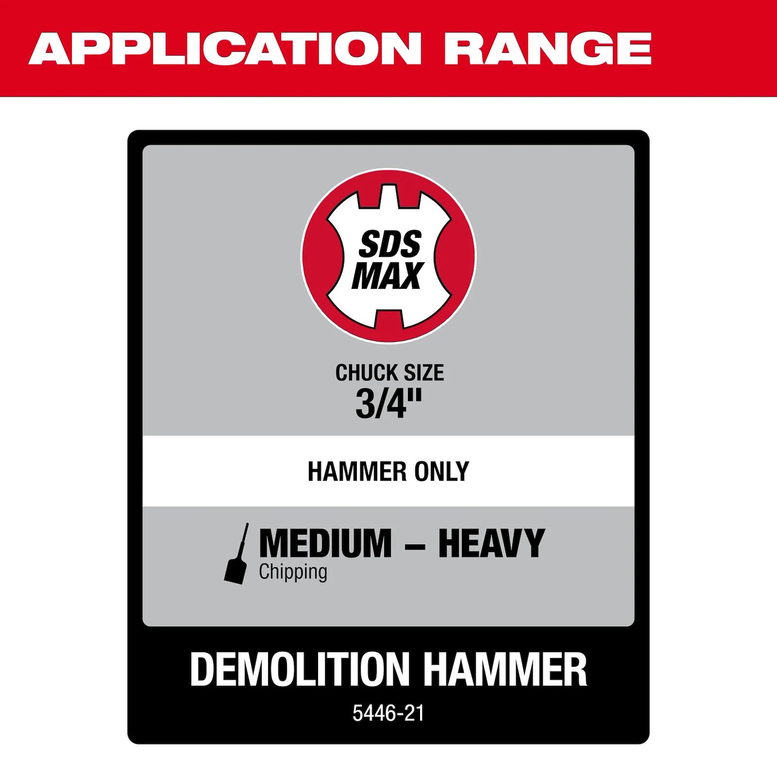 Get best-in-class power and the highest overload protection for the toughest demolition jobs. The SDS-Max Demolition Hammer has a heavy-duty crank piston mechanism that delivers 8.8 ft-lbs of impact energy for hard-hitting performance in any concrete. For lighter applications, the two-speed impact mode allows you to reduce BPM to 2,200. Advanced Constant Power Technology electronics and a mechanical clutch enhance your control and the demolition hammer’s long-term durability. The Anti-Vibration System and side D-handle ensure safe, comfortable use. The tool comes with a carrying case.