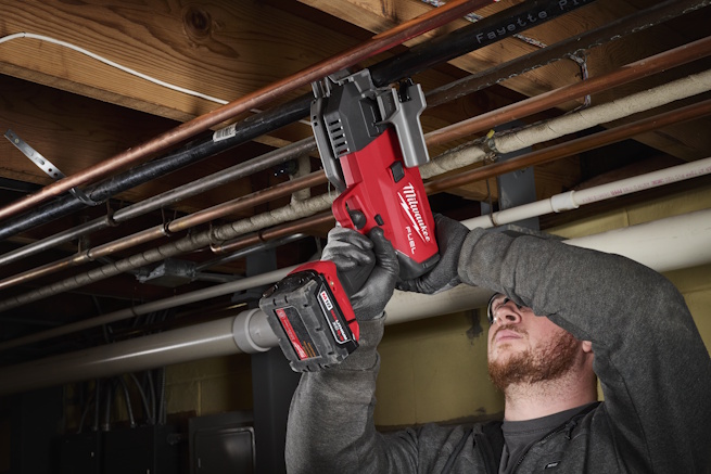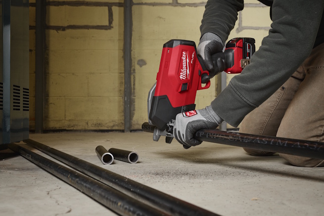 The M18 FUEL™ ½”-1” Steel Pipe Cutter delivers the easiest, consistent, clean cuts on ½”-1” steel pipe. Clean cuts are critical to making quality press and threading connections, and the Steel Pipe Cutter delivers square cuts and minimizes burrs. Paired with our exclusively compatible 1/2” – 1” Steel Pipe Cutting Blade, the Steel Pipe Cutter delivers superior cut quality and speed, allowing users to maximize productivity by providing the fastest cut to connection process. Leveraging the power of M18 FUEL™, this solution cuts steel pipe up to 1-5/16” (OD) and offers up to 200 cuts on 1” steel pipe per blade. The tool’s design allows users to make controlled cuts on both installed pipe and new pipe, providing unmatched versatility for service applications, reducing the need to carry multiple steel pipe cutting tools onsite depending on the cut location. Providing access with as little as 2.5” clearance, the M18 FUEL™ Steel Pipe Cutter is optimized for residential plumbing and mechanical contractors who need a dedicated cutting solution for steel pipe applications.