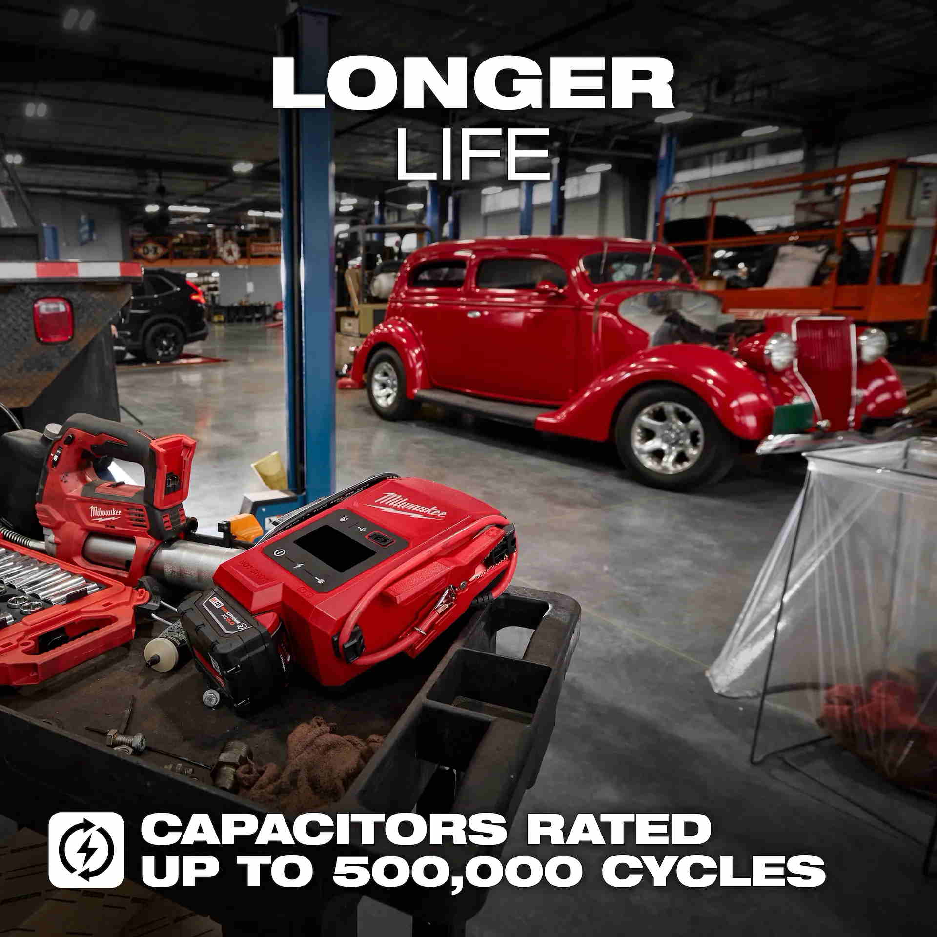 Our M18™ HOTSHOT™ Jump Starter is a new-to-world automotive solution that redefines the reliability & ease of operation in the jump starter category. Our Jump Starter is ALWAYS READY TO JUMP, requiring no maintenance or pre-charging. This new-to-world proprietary technology utilizes internal capacitors and, with any M18 battery, allows our jump starter to be prepared to Jump in Under 70 Seconds. Offering TRUE ALL-WEATHER PERFORMANCE, our jump starter performs consistently from -4°F To 122°F. The internal capacitors are rated up to 500k cycles, delivering LONGER LIFE & unmatched reliability. The M18™ HOTSHOT™ provides up to 2000 peak amps, allowing you to start up to 8.1L gas and 3.0L diesel engines. One M18™ REDLITHIUM™ XC5.0 BATTERY delivers up To 70 Jump Starts on a single charge. Our custom clamp design ensures proper access to battery terminals, allowing for better connection. Our M18™ HOTSHOT™ Jump Starter is a new-to-world solution that delivers an Always-ready experience, True all performance, & longer life.