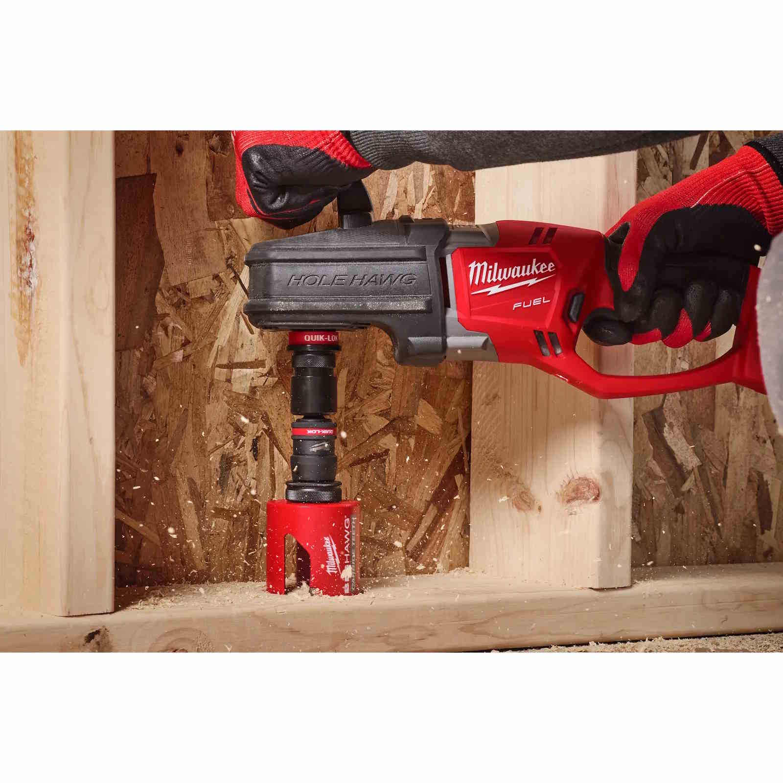 Our QUIK-LOK™ Arbor Set provides the fastest hole saw changes and universal fit with all industry standard threaded hole saw sizes, types, and brands. The included adapters ensure compatibility with small-thread and large-thread hole saws and eliminates the need for multiple arbors, saving you time and money. Our QUIK-LOK™ system is designed with the ultimate durability to deliver the strength and reliability to match the all-day demands of the job site. Due to the threaded adapter design, this system retains Hole Enlargement capability. The Reusable Large Thread Pin Adapter is compatible with hole saws from 1-1/4" up to 6-7/8" without the risk of thread stripping, binding or spin-off and retains Hole Enlargement capability. The Small Thread Adapter is intended for hole saws from 9/16" to 1-3/16" with 1/2" x 20 Threads. The Large Thread Adapter is intended for hole saws from 1-1/4" up to 2" with 5/8" x 18 Threads.