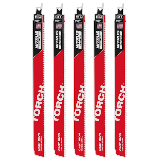 We engineered The TORCH™ with Carbide Teeth to deliver extreme blade life and unmatched versatility. This SAWZAL® blade is the best solution for thick and extreme metal cutting applications. The TORCH™ delivers up to 50X life over standard recip saw blades. The heavy duty blade cuts through a wide variety of metal materials including black pipe, angle iron, cast iron, stainless steel and high strength alloys. Each blade tooth has 25% more carbide than leading bi-metal and carbide competitors. Optimized tooth design ensures The TORCH™ blades deliver extreme life in metal cutting applications.