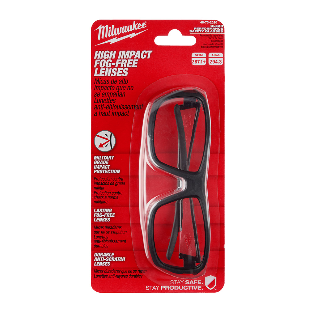 Milwaukee Tool's Performance Safety Glasses are designed with High Impact, Fog-Free Lenses. For added protection, the lenses are high-velocity impact tested providing you with military grade impact protection. The protective eyewear features fog-free lenses so the lenses will stay clear and unobstructed on any jobsite. Durable anti-scratch lenses protect your eyes while withstanding the demands of a job site. Clear and tinted options are available so your eyes stay safe whether working indoors or outdoors.
