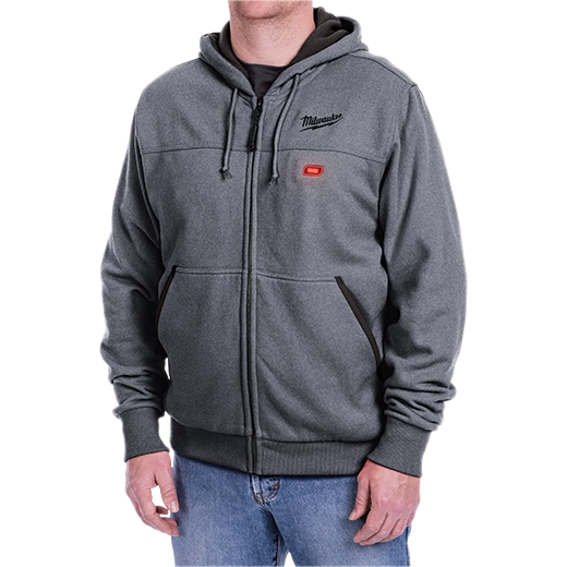 Milwaukee Tool's M12™ Heated Hoodie is powered by an M12™ REDLITHIUM™ Battery with carbon fiber heating elements to create and distribute heat to the chest and back. A one-touch LED controller allows you to select from three heat settings, delivering ideal heat for any environment. The Quick-Heat function allows you to feel your chosen heat level 3X faster than previous hoodies and market competitors. MILWAUKEE® heated hoodies combine a durable cotton/polyester exterior with a waffle weave thermal lining for a versatile three-season solution to keep heat in and allow you to shed bulky layers. These battery-powered heated hoodies are available in four colors, black, gray, red, and navy blue.