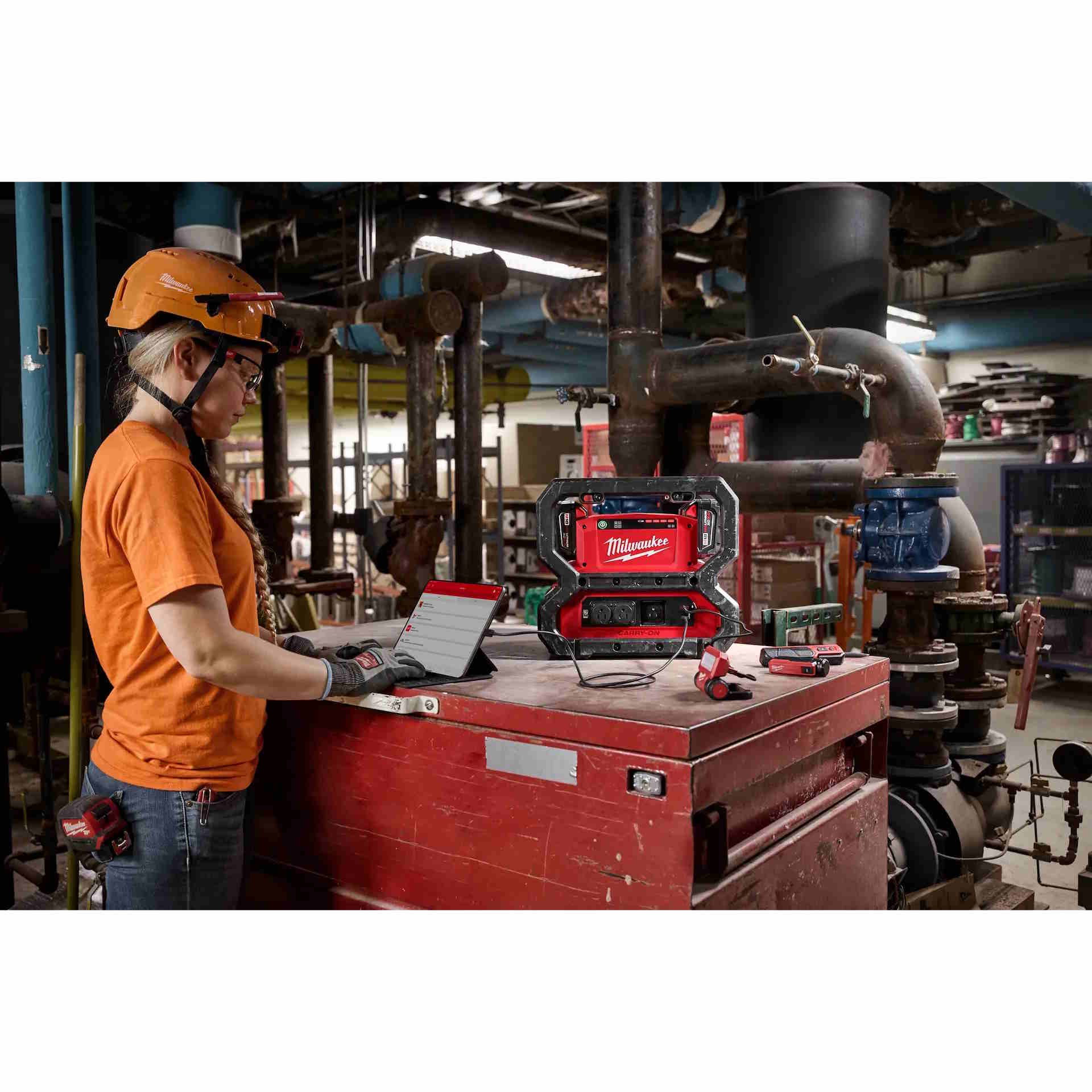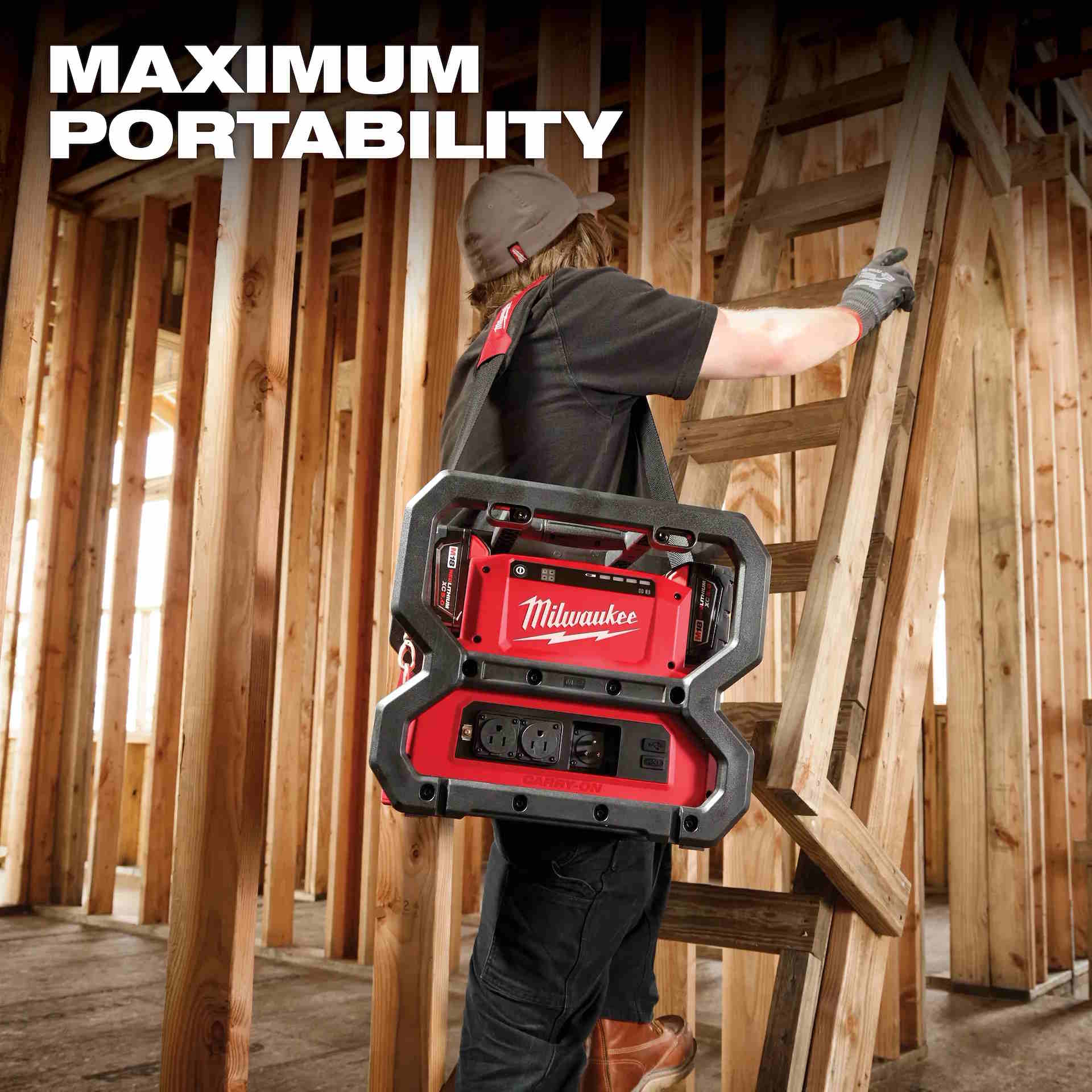 The MILWAUKEE® M18™ CARRY-ON™ 3600W / 1800W Power Supply provides the most versatile 15A power for the jobsite, with less hassle. The power supply delivers 3600 starting watts,1800 running watts of pure sine wave inverter energy with longer sustained power. Users can run demanding trade tools, such as table saws, pancake compressors, or even pipe threaders. Power everything from 15A tools to your sensitive electronics, with instant start technology and better-sustained power. With a combination of any MILWAUKEE® M18™ batteries, users can power any 15A products and minimize hassles typically associated with power on the jobsite. The quiet, compact, emissions-free cordless Power Supply can operate indoors and underground, including confined spaces, scissor lifts, and utility carts. The lightweight and compact design of the CARRY-ON™ Power Supply allows users to have power by their side, instead of relying on gas alternatives and extension cords. The M18 CARRY-ON™ can only run on 4 batteries. Users can charge M18™ Batteries simultaneously at a 3A standard rate when the product is not in discharge mode. Prevent battery theft with lockable battery bays using a padlock (not included). Charge your sensitive electronics faster, with USB-C PD and USB-A ports. The temporary power supply is compatible with the MILWAUKEE® Shoulder Strap (sold separately), reducing fatigue during transportation on and off the jobsite.