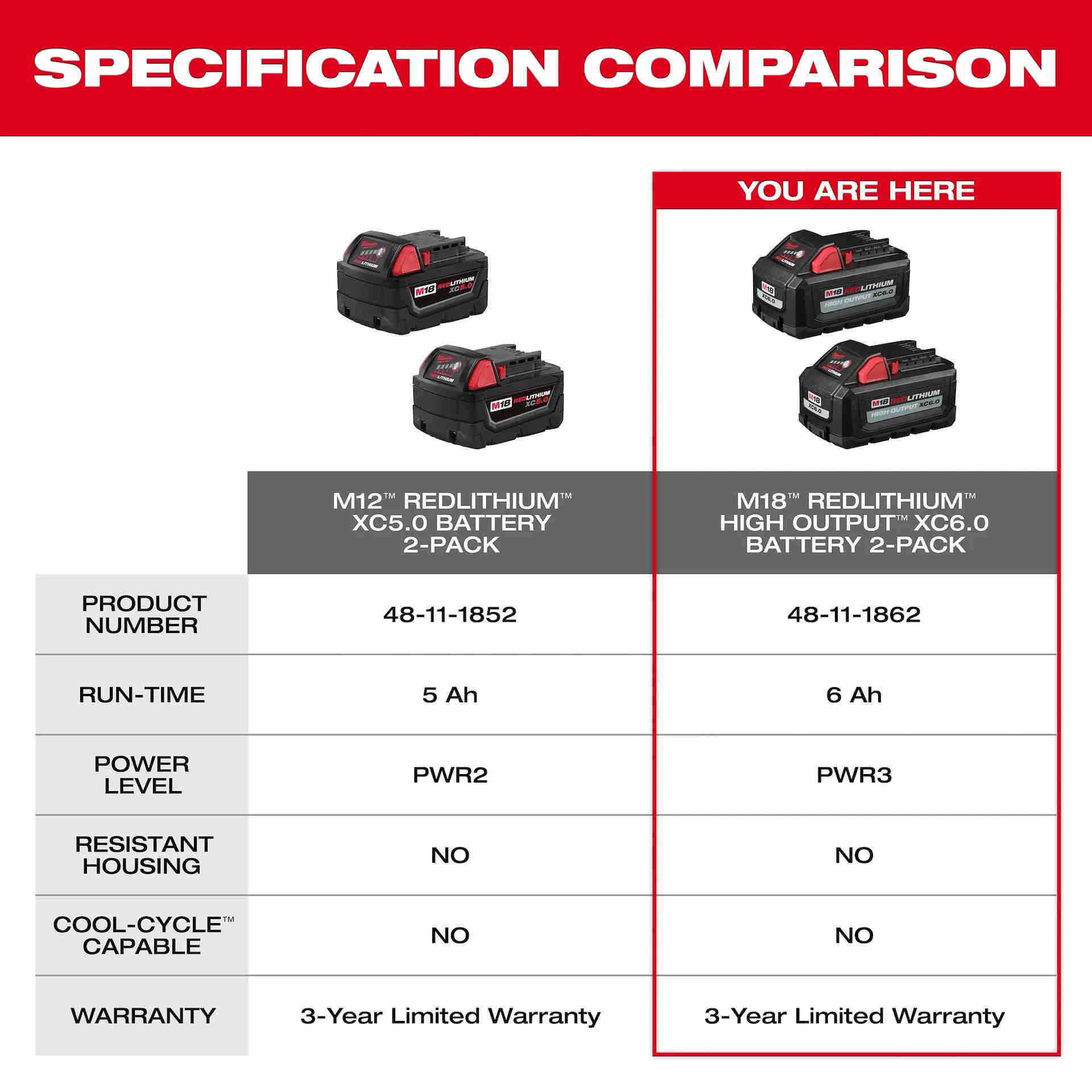 MILWAUKEE 48-11-1862 M18 High Output RedLithium 6.0Ah Battery 2PK