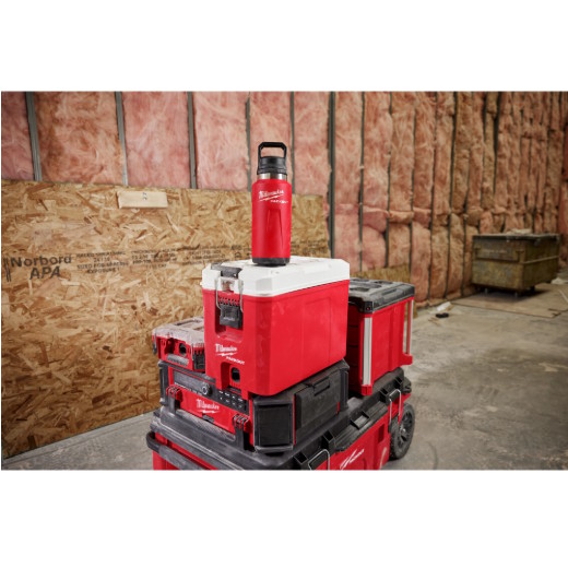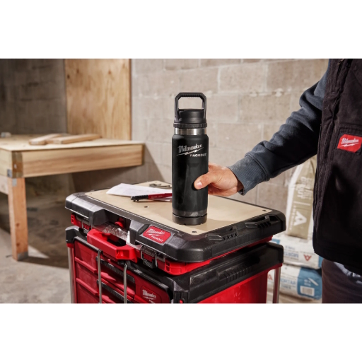 Milwaukee Tool's PACKOUT™ 24oz Insulated Bottle with Chug Lid features twist-to-lock PACKOUT™ Connectivity so you can attach your bottle to the top of PACKOUT™ solutions, allowing for secure drink storage on the jobsite. The PACKOUT™ 24oz Insulated Bottle with Chug Lid has double wall vacuum insulation, keeping drinks hot or cold all day. The impact-resistant body is constructed with thicker 18/8 stainless steel to withstand harsh jobsite environments. Our dishwasher-safe 24oz Insulated Bottle comes with a leakproof chug lid. MILWAUKEE® PACKOUT™ is the industry's most versatile and durable modular storage system.