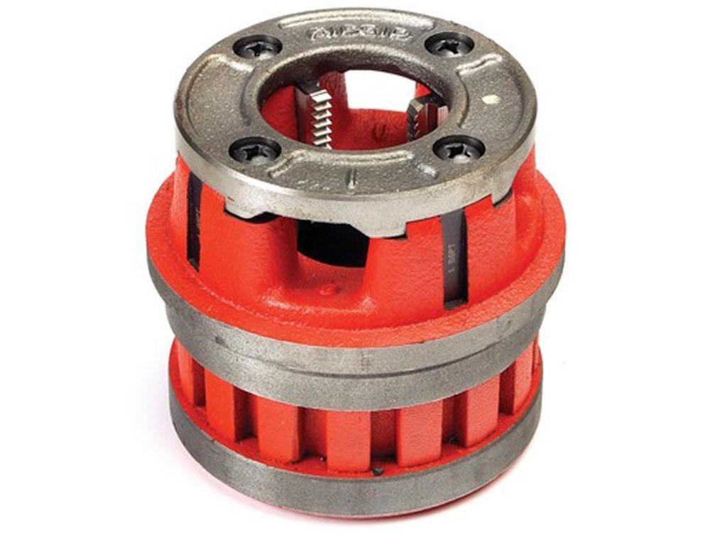 The high-speed stainless steel RH die head is designed for use with hand-held power drives. The NPT thread type die head has a nominal pipe size of 2". It comes with supplied dies.