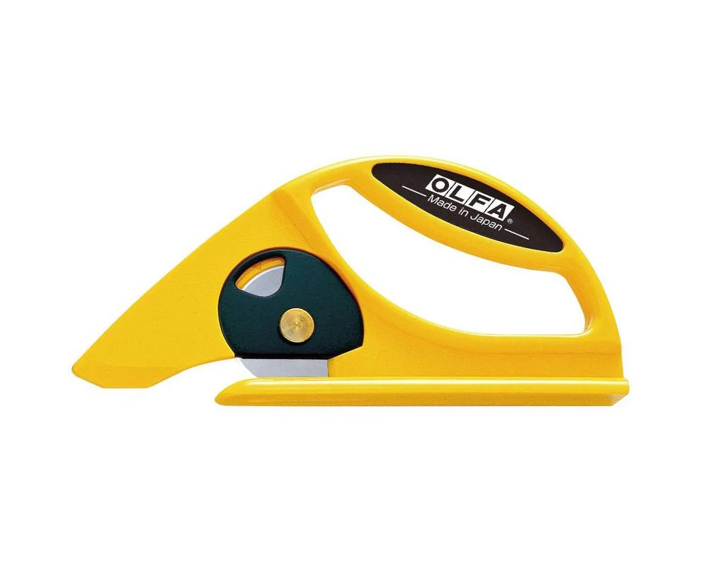 The tool comes preloaded with an extra-sharp OLFA 45mm Tungsten Steel Rotary Blade. The blade is fixed in place to provide leverage and easy cutting of demanding construction materials. Each blade offers (12) cutting points for volumes of work with less blade changes. When a section gets dull, loosen the wing-nut screw, and rotate the blade slightly for a fresh cutting edge.