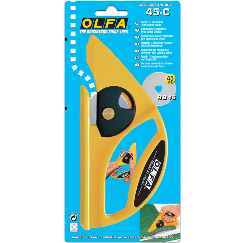 When you need to cut materials that are rolled, such as carpet, linoleum, landscape fabric, paper or more, the OLFA 45mm 45-C Roller Materials Cutter is the right tool for the job.