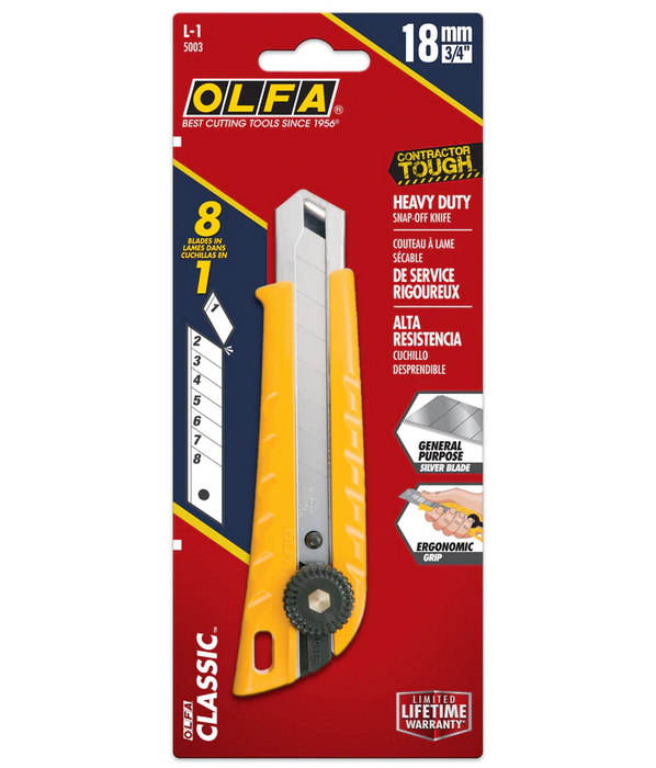 When you need a tough blade you can rely on, choose OLFA 18mm Heavy-Duty Silver Snap-Off Blades. Manufactured from premium Japanese carbon tool steel and expertly honed to provide a resilient sharp edge. Use these durable blades to power through gritty cutting projects.
