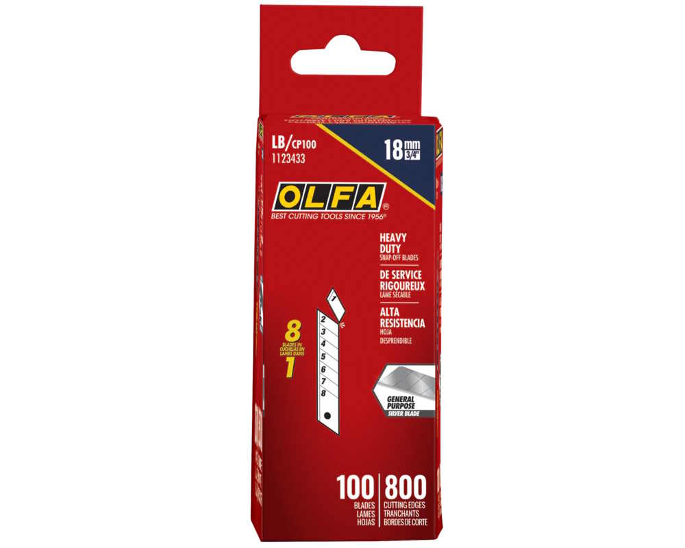 OLFA 18mm LB/CP100 Snap Blades, 100 blades in the box