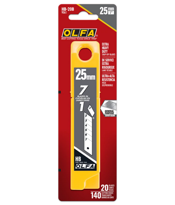 For extra heavy-duty professional cutting, not any old blade will do. That is why tradespeople choose OLFA 25mm Silver Snap Blades for tough projects. Crafted from premium Japanese tool steel for unmatched edge retention and sharpness.