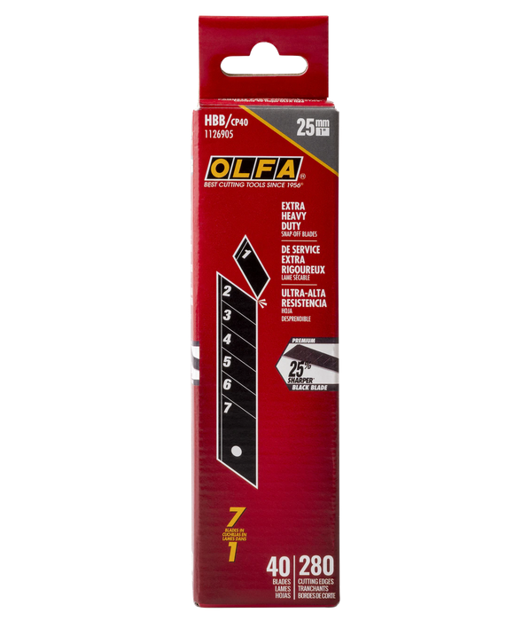 OLFA 18mm Heavy-Duty Ultra-Sharp Black Snap-Off Blades are the solution for precision cutting. Premium Japanese carbon tool steel provides durability. Dual-honed black blades are up to 25% sharper than standard silver blades.
