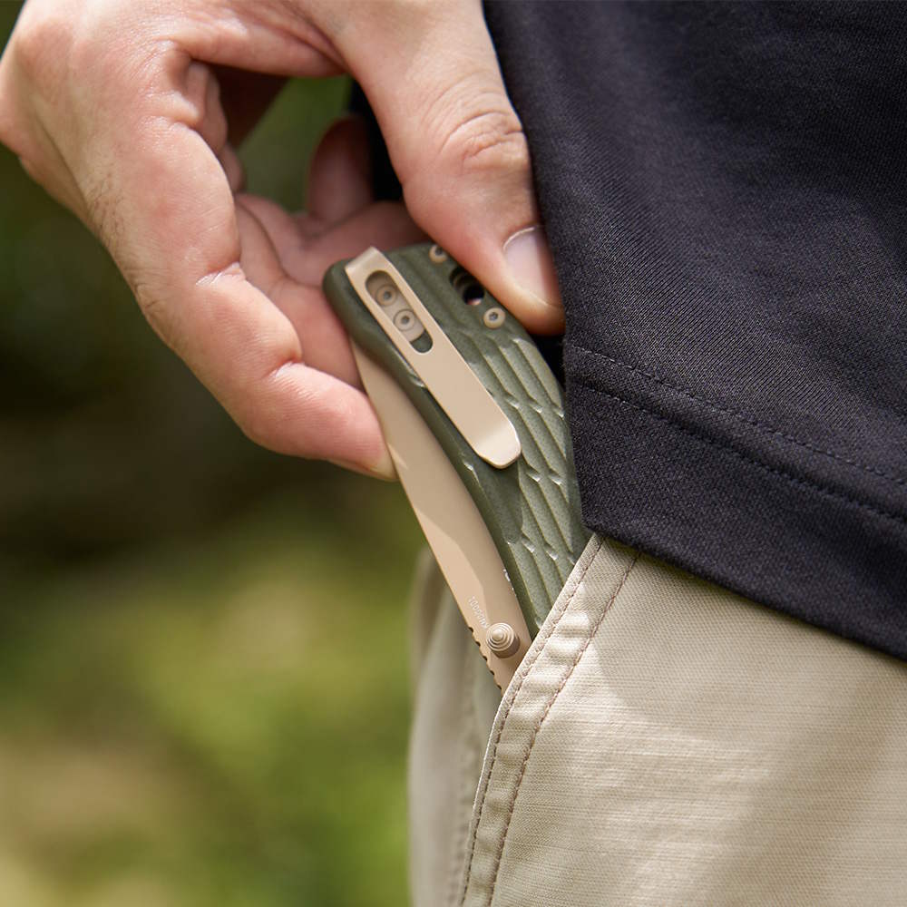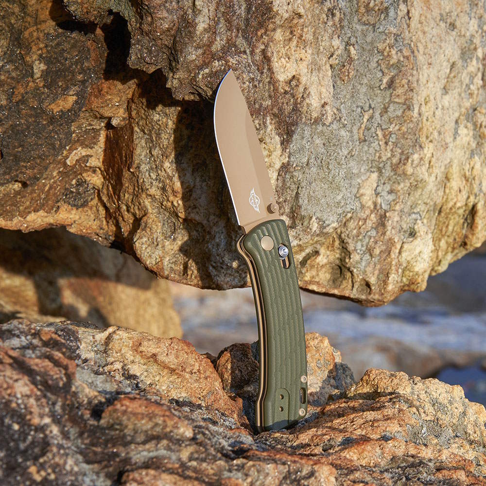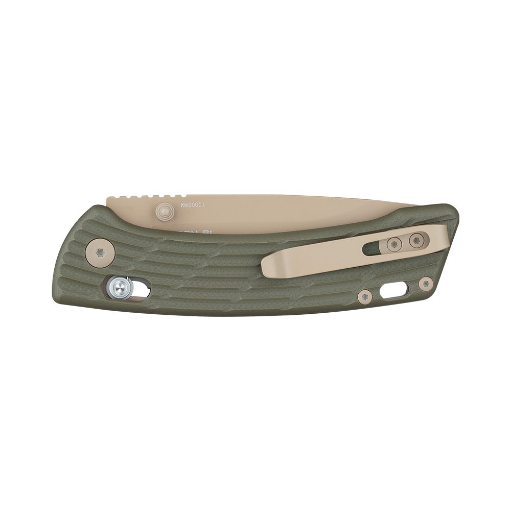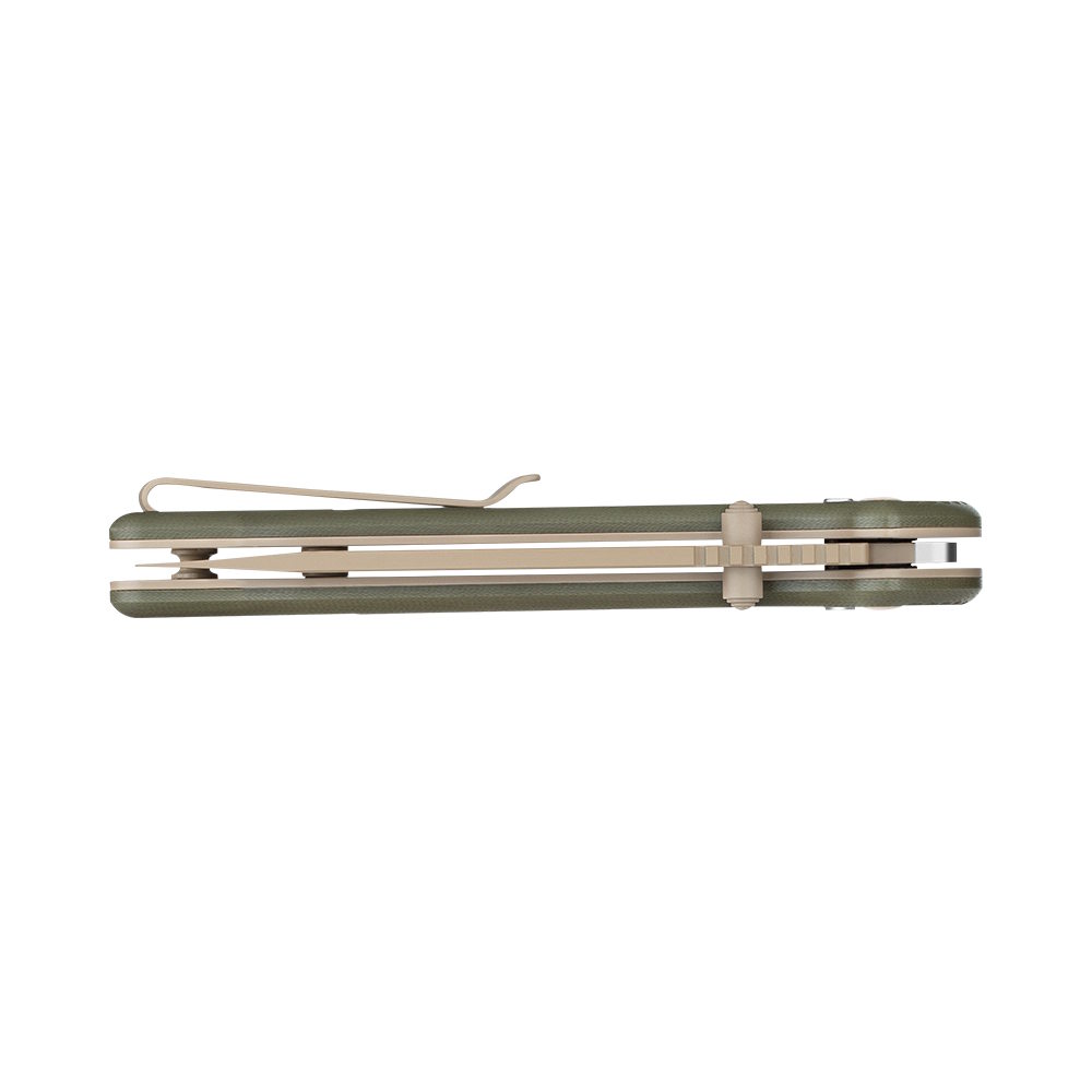 Strong, Attractive Cerakote Coating: The blade, liners, pocket clip, and screws have a desert tan Cerakote coating for superb durability, performance, and appearance.