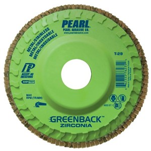 Exclusive outer coating, over the best premium Zirconia grains available, make the Pearl Abrasive Greenback™ Maxidisc™ flap disc run cooler and last longer as well as providing lubrication to prevent burn marks and discoloration of the finished material.