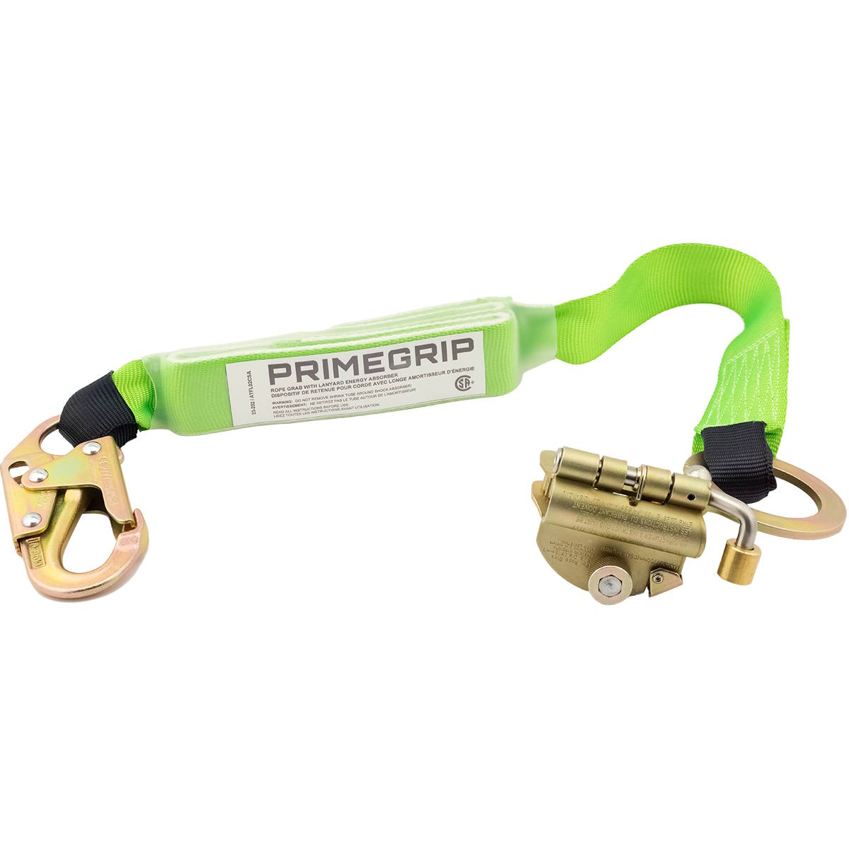 ROPE GRAB WITH 2' ENERGY ABSORBER - Rope grab integrated with a 2' lanyard CSA-certified for use in fall arrest designed with a double-locking closing mechanism and a large ring for direct web or snap hook attachment. Compatible with 5/8" diameter rope, it can be attached to any point on the lifeline.