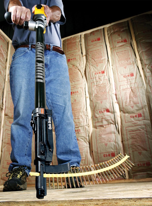 The patented curved collation strips hold the screws up and away from the work surface, making moving and positioning the tool easier. They are also pointed on the inserted end to simplify loading.